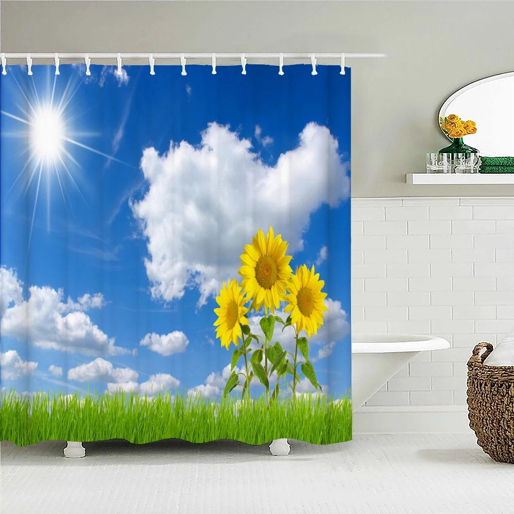 Solig Blå himmel moln Landskap Vattentätt Tyg Duschdraperi landskap Tryckta Duschdraperier för Badrum Dusch med Krokar