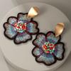 Broderade Tyg Hängande Örhängen Blomma Pärlbeströdda Hängande Damörhängen Handgjorda Accessoarer