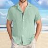 Men's Cotton And Linen Striped Casual Loose Short Sleeved Shirt