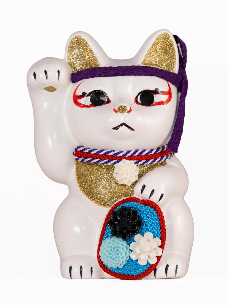 Lyckokatt Kabuki Sukeroku Högerhandskatt Lyckobringande Feng Shui-figur Offerlåda Vit (M-STORLEK Vit) upphöjd/Keramik_lyckobringande Maneki-neko (suke_M