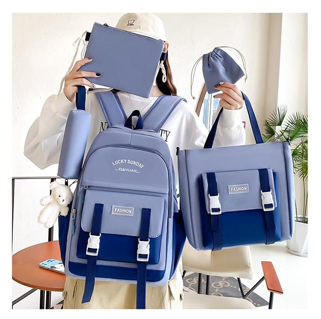 Student High school student schoolbag Large capacity Junior high school student backpack Women's school five-piece make-up backpack