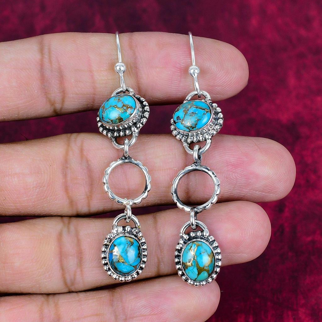 Blå Kopparturkoser Handgjorda Ädelstensörhängen, 925 Äkta Sterlingsilverörhängen Antika Smycken, För Förlovningspresent