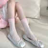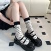 Women's Spring and Summer Thin Mid-calf Socks with Bow Polka Dot Lace White Lolita