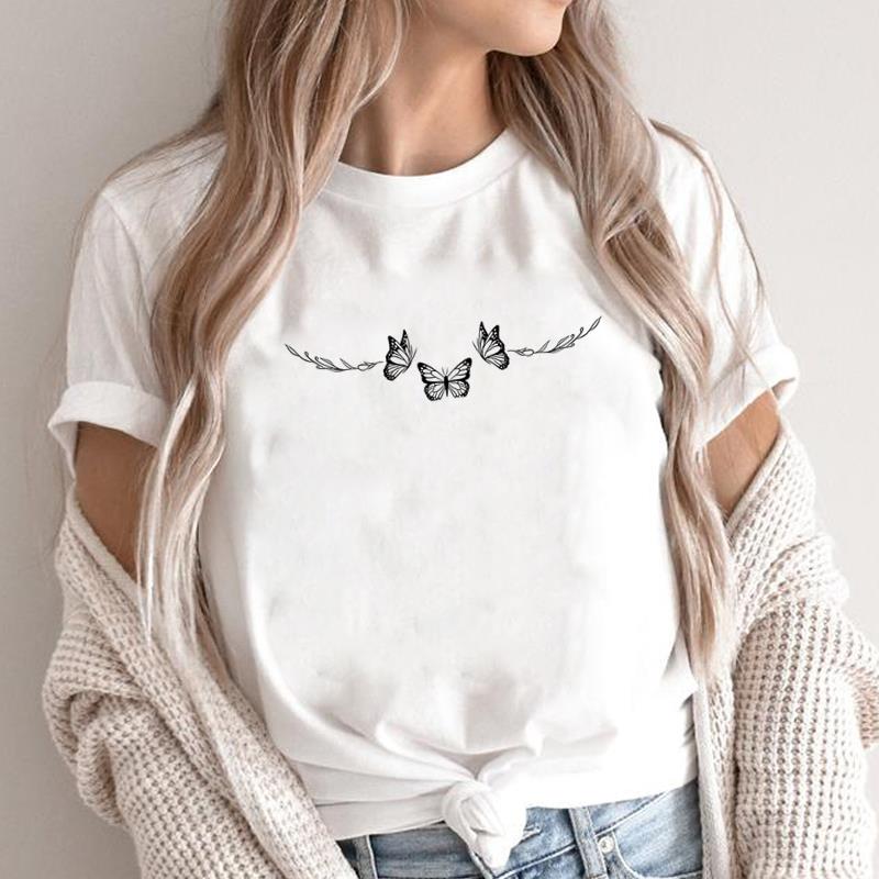 (Asian Size) butterfly trend 90s Short Sleeve Clothing Print Female Casual Fashion T Women's Top Graphic Tee T-shirts