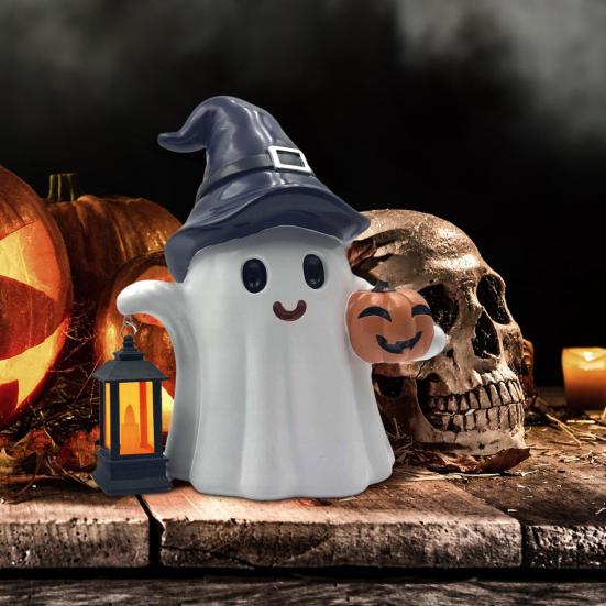 Enhance your outdoor and indoor spaces with this charming ghost statue. Crafted from weather-resistant resin, this statue features intricate handmade details and a smooth texture, making it perfect for garden decoration. The playful ghost pumpkin design adds a whimsical touch to your decor, creating a festive and lively atmosphere in your garden, terrace, or sidewalk.