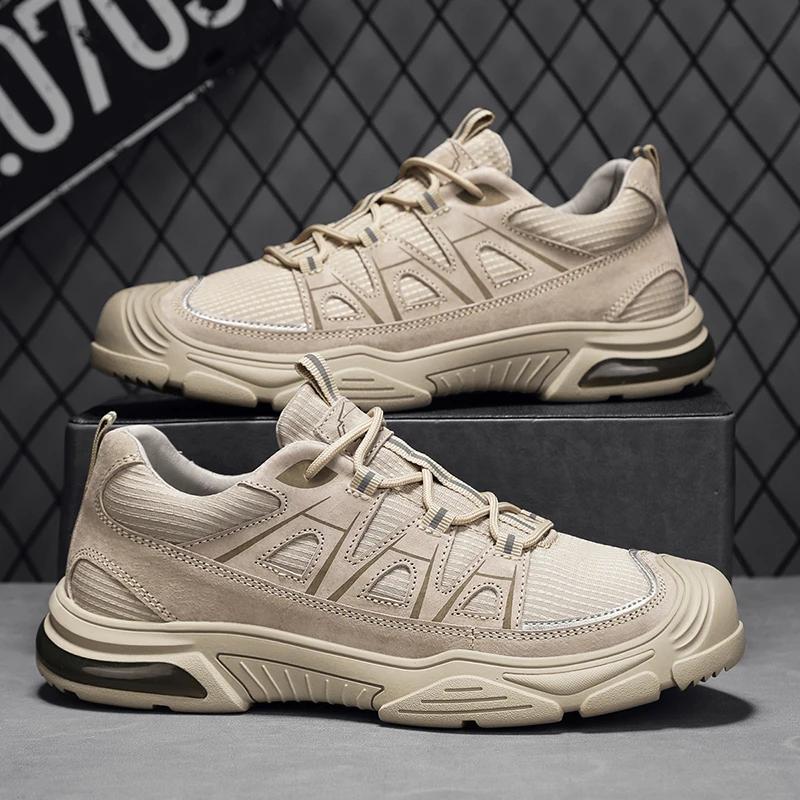 Outdoor Male Field Hunting Hiking Climbing Training Cow Leather Outdoor Breathable Male Sneakers Shoes For Men Adult Non-Slip