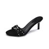 2025 Nya Sommar Utomhus Retro Stiletto Moderna Tofflor Peep Toe Spetsig Tå Enfärgade Nitar Damtofflor