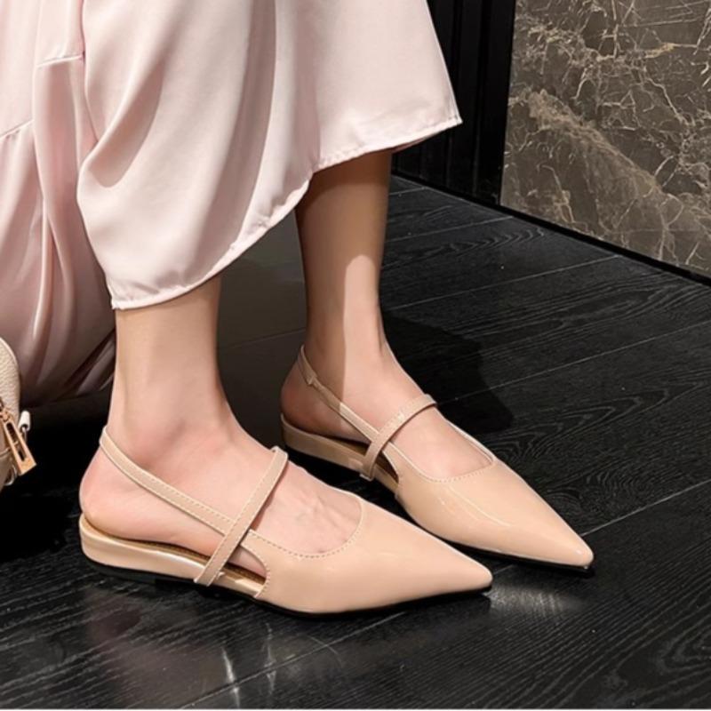 Lackläder Enrem Bao Tou Sandaler Dam Xia Nya Spetsig Tå Låg Skåning Utebruk Lågklackade Skor