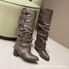 Heel Pants Boots Western Cowboy Boots Women's 2025 Fall Vintage Maillard Tall Belt Buckle Pointed Knight Boots