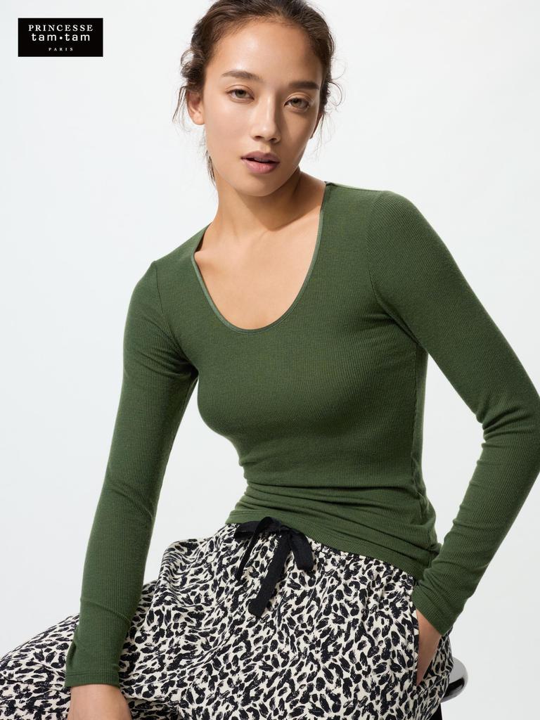 UNIQLO Ultra Warm Heattech Cashmere Blend Rib Crew Neck T