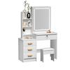 Sminkbord med LED-belyst spegel, Sminkbord med 4 lådor och öppna hyllor, Sovrums-sminkbord med pall