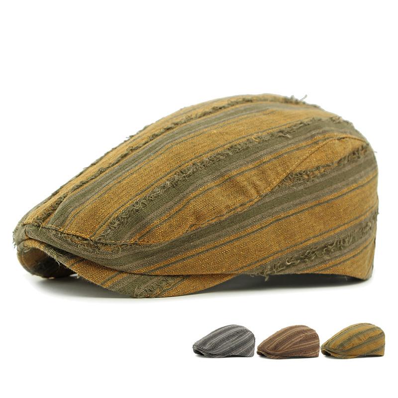 Spring Summer Cap Women's Beret British Vintage Striped Cap Men Peaked Cap