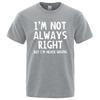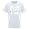 I'm Not Always Right about The Alphabet Men's High-quality Summer Short-sleeved Clothes Cotton Loose Street Tops T-shirts