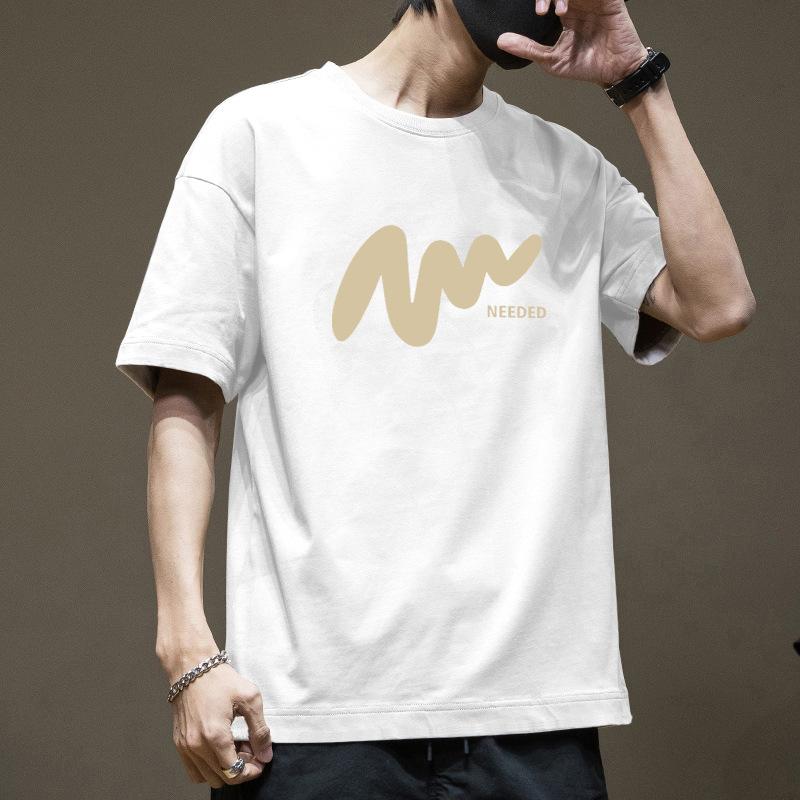 Cotton Short Sleeve T Shirt Print Black White Fashion All Match Breathable Summer Sport T-shirt Men Top