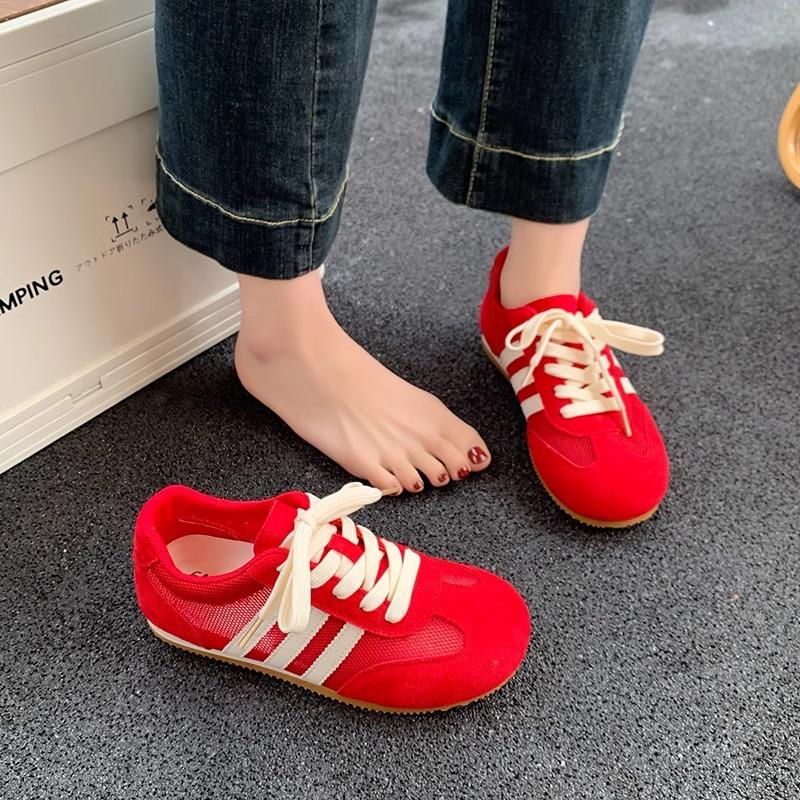 Sommar tyska träningsskor dam 2025 nya populära retro mesh andningsbara mångsidiga avslappnade brädskor Forrest Gump vita skor