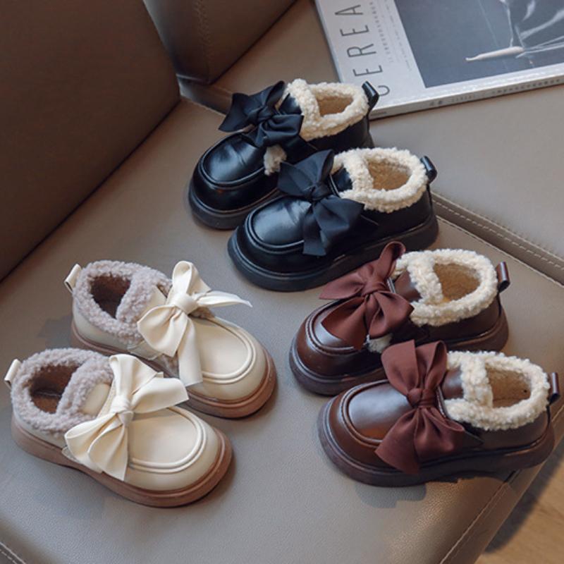Skor Flicka Barnsko Höst Flicka Plysch Läder Stövel Koreansk Edition Barn Rosett Bomullssko Varm Lädersko Mode Mary Jane Sko