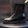 Läder Martin-kängor hösten 2025 nya läderkängor dam mellanhöga vardagliga tjock klack korta kängor damsockor platå damkängor