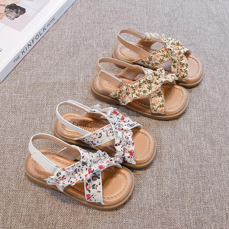 2025 Summer New Kids Beach Sandals for Girls Anti-slippery Sole Toddler Open-toe Shoes with Floral Straps Princess Boho Style