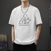 American High Street Printed Short Sleeved Pure Cotton T-shirt for Men In Summer Loose Trendy Brand Casual Couple with Five Inch Sleeves White T-shirt