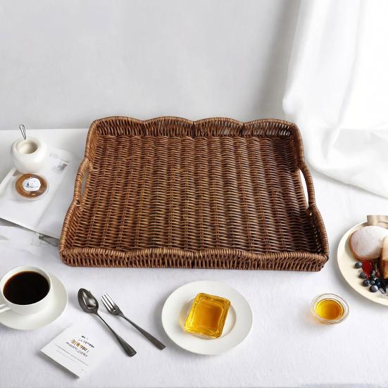 Förvaringsbricka Korg i flätverk med handtag Retro design i rottingväv Lätt att rengöra Multifunktionell bänkskivaorganisatör