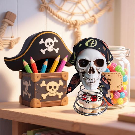 Piratskalle Trädtopp Halloween Spöklik Skelett Trädtoppsprydnad Harts Mänsklig Skalle Dekoration för Halloween Julparty Dekor