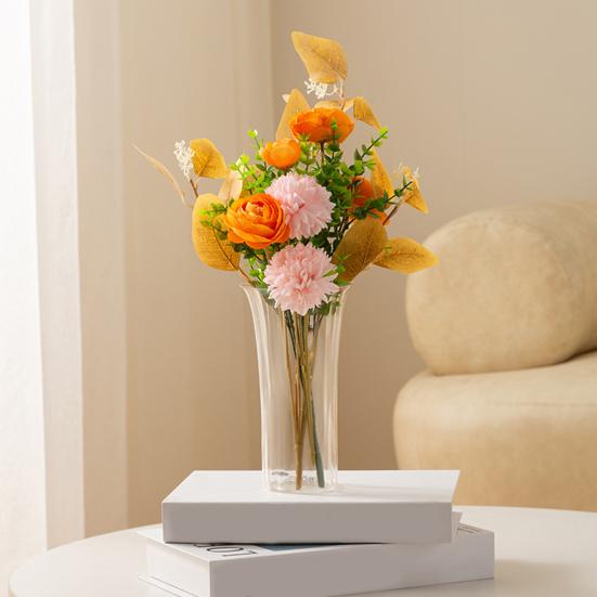 Enkel och mångsidig stil: Denna vas har en elegant design med mjuka linjer, en smal mynning och en bred kropp och kompletterar olika blommor som rosor.. Dess anpassningsbara stil integreras sömlöst med heminredningsteman och förstärker elegansen i vilket utrymme som helst.
