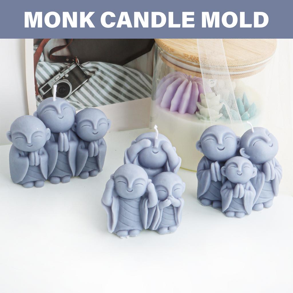 Söt munkform Silikonljusform Flexibel silikonljusform av tre munkfigurer för ljusprydnadshantverk