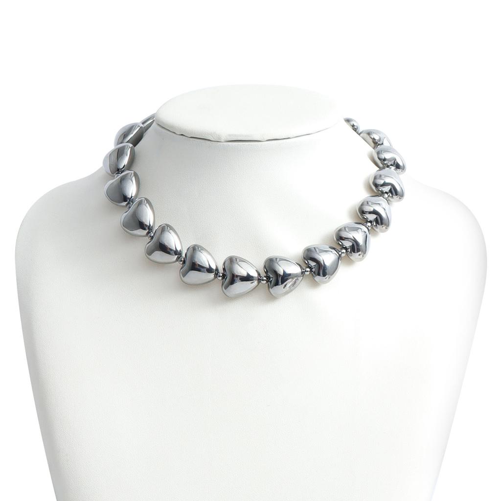 Gunmetal Black Beaded Heart Pendant Necklace Adjustable Length Neckchain Fashionable Clavicle Chain Jewelry for Women