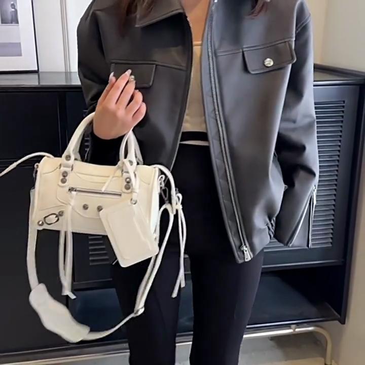 Premium känsla nisch handväska dam ny retro mode liten fyrkantig väska nit dekorativ lokomotivväska