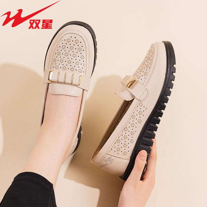 Damskor mammaskor sommar ihåliga andningsbara läderskor senbotten platt botten