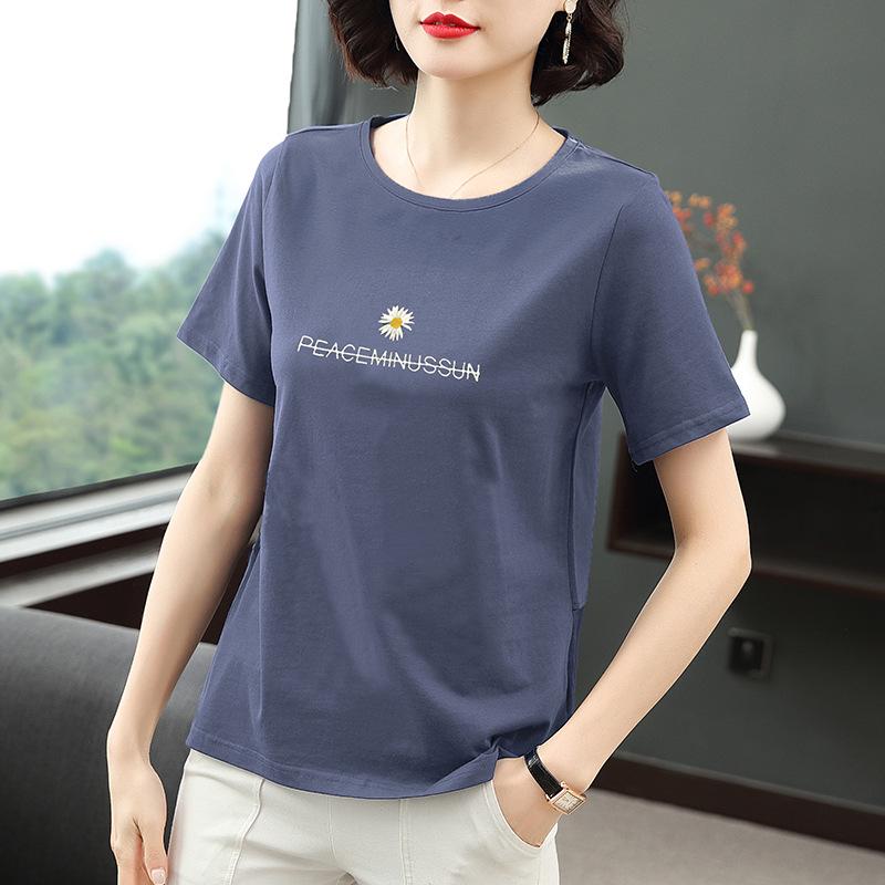 Upptäck den perfekta blandningen av komfort och stil med denna vackert broderade T-shirt i ren bomull med korta ärmar. Denna topp är skapad med mammor i åtanke och erbjuder en åldersminskande lös passform som faller vackert för att smickra alla kroppsformer.. Det högkvalitativa bomullsmaterialet säkerställer andningsförmåga och mjukhet, vilket gör det idealiskt för vardagsbruk.. Med charmig bokstavsdekoration och en klassisk rund halsringning kombinerar denna T-shirt utan ansträngning avslappnad chic med en touch av elegans.. Oavsett om du springer ärenden eller njuter av en dag ute, är denna mångsidiga topp säker på att bli en favorit i garderoben.