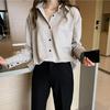 Blus för kvinnor i koreansk stil, enfärgad, långärmad - 2025 Vår/Höst Chic, Lös passform