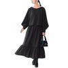 [Comfortable] The soft material provides a stress-free fit. Achieve a sophisticated look with just one piece. Perfect for relaxing at home. The relaxed waistline makes it suitable as a maternity dress. The relaxed silhouette with voluminous sleeves adds a trendy touch. Simply wear it as a dress for a sophisticated, casual look.