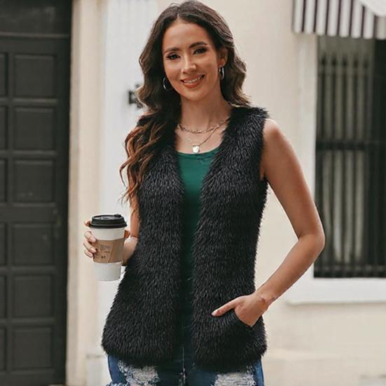 Stilfull öppen sömnadsdesign: Omfamna den chica lockelsen hos denna korta väst med öppen sömnad och plyschtextur.. Den enfärgade designen ger din outfit en touch av sofistikering och blandar ledigt med stil.