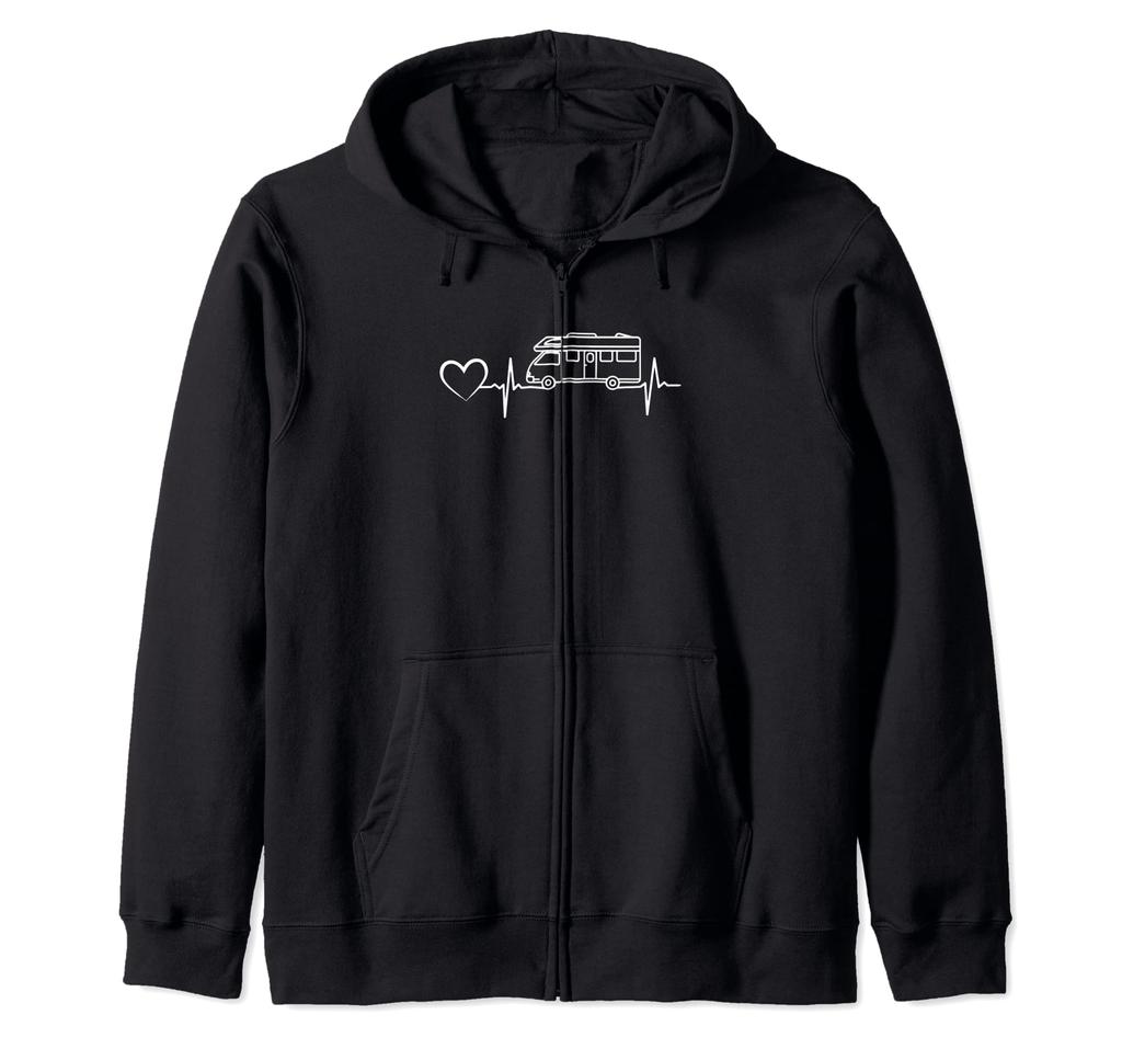Camping Camper Heartbeat Heart Heartbeat Caravan Zip Hoodie