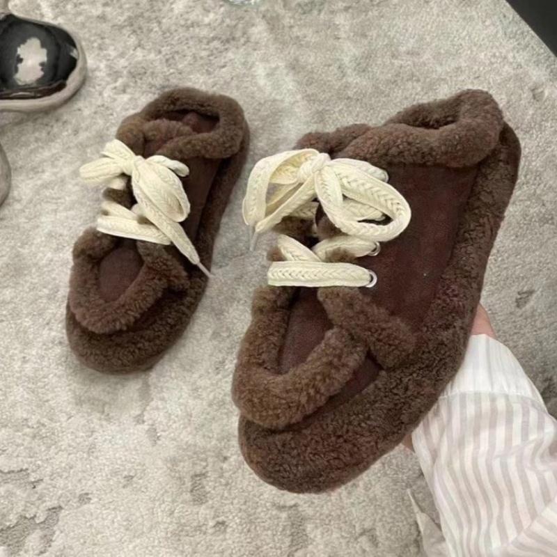 Winter Women Loafers Plush Lace Up Flat Shoes Bow Woman Flats Warm Loafer Wool Casual Shoes Fur Boat Shoes Flats Zapatos Mujer