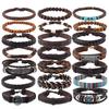 New 21-piece fabric turquoise wood bead alloy wax thread leather bracelet leather jewelry