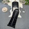 Diamond Stand-Collar Gauze Fishtail Skirt Fashion Suit