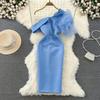 Accessible Luxury One-Side Ruffle Sleeve Sloping Shoulder Dress Dress
