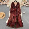 Vacation Style Summer Mesh Pleated Long Sleeves Dress