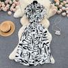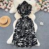 Mild Luxury Retro Summer Shoelace Waist Trimming Printing Dress
