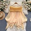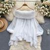 Fairy Top Super Fairy Sweet Heavy Industry Ruched off-Shoulder off-Shoulder Pure French Style Puff Sleeves Asymmetrical Chiffon Shirt