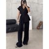Western Style Lace-up Cardigan Top Trousers Set Lace up Cardigan Top and Pants Set