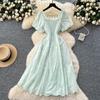 French style Gentle Chic Square Collar Puff sleeve Hollow Embroidery Dress Women Summer Waist Hugging Slimming A Word First Love Skirt