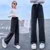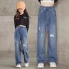 Flickors Vår- och Höstjeans, Stora Flickor, Lösa Baby Casual Westernstil Raka Byxor