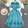 Sanzhai Ruched Fairy round Neck A- line Ruffled Long Dress