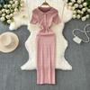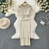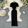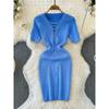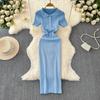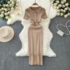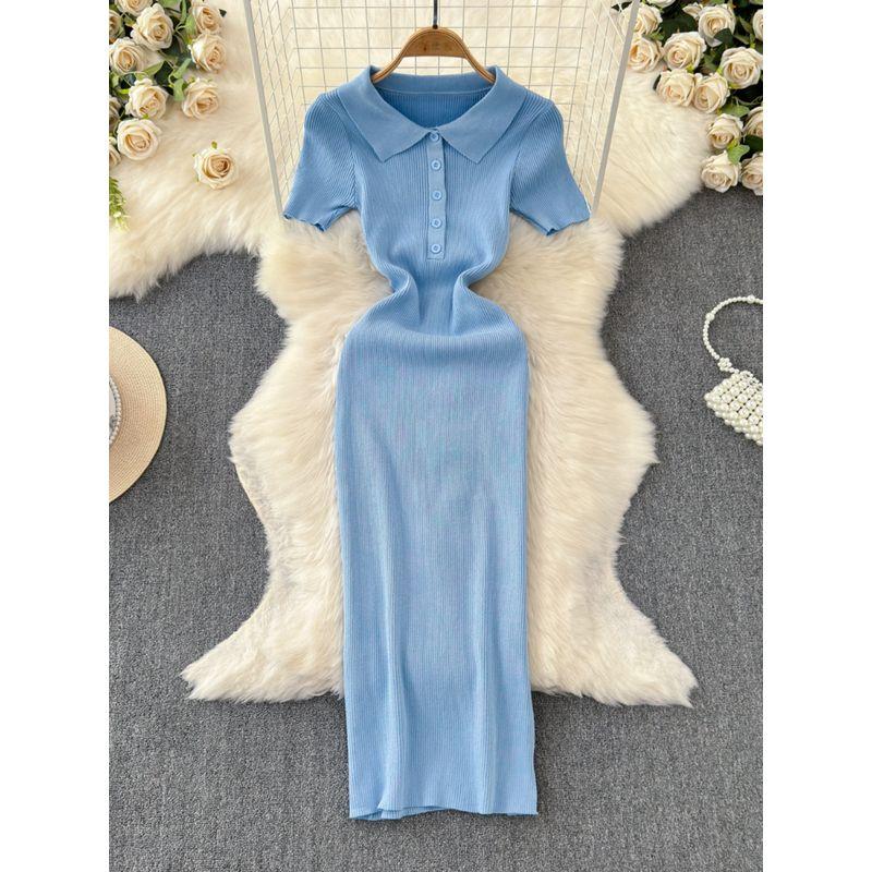 2024 Summer Korean New Elegance Retro Elegant Short Sleeve Polo Collar Waist-Tight Slimming Knitted Hip-Wrapped Dress