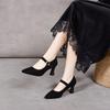 Spetsiga Mary Jane-skor vår nya svarta temperament damskor enordsspänne grund mun damhögklackar