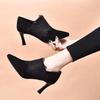 Fashion pointed high heels spring new temperament lace deep mouth single shoes black sheepskin stiletto ankle shoes