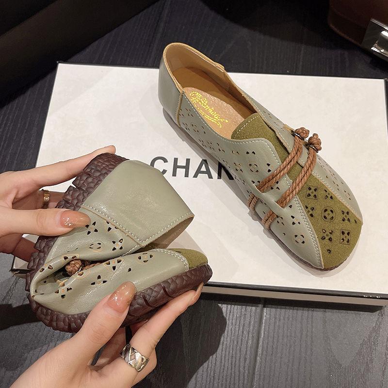 2024 Newly Square Toe Women's Flats Designer Cutout Shoes Ladies Wide Fit Soft Leather Moccasins Female Driving Sneakers